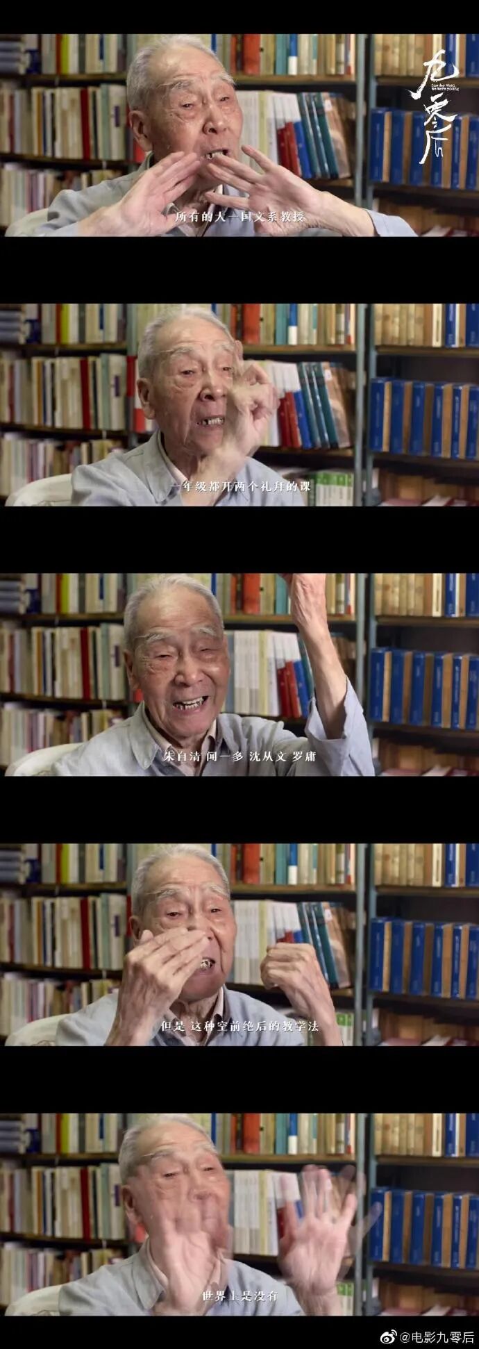 比如,片中一些老人忆起当年大一时的通史教育。当时,闻一多、沈从文、罗庸等十几位国学大师轮流每人讲两个星期。对于这样的授课形式,两位当年的同班同学却给出了完全相反的看法。